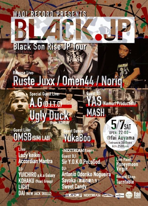 NYより、Ruste JuxxたちのJPツアー開催! D.I.T.CのA.G , 韓国からUgly Duck。 そして証言のDJ YAS。 そしてSIMI LABよりOMSB。いまリアルなヒップホップを体感せよ!