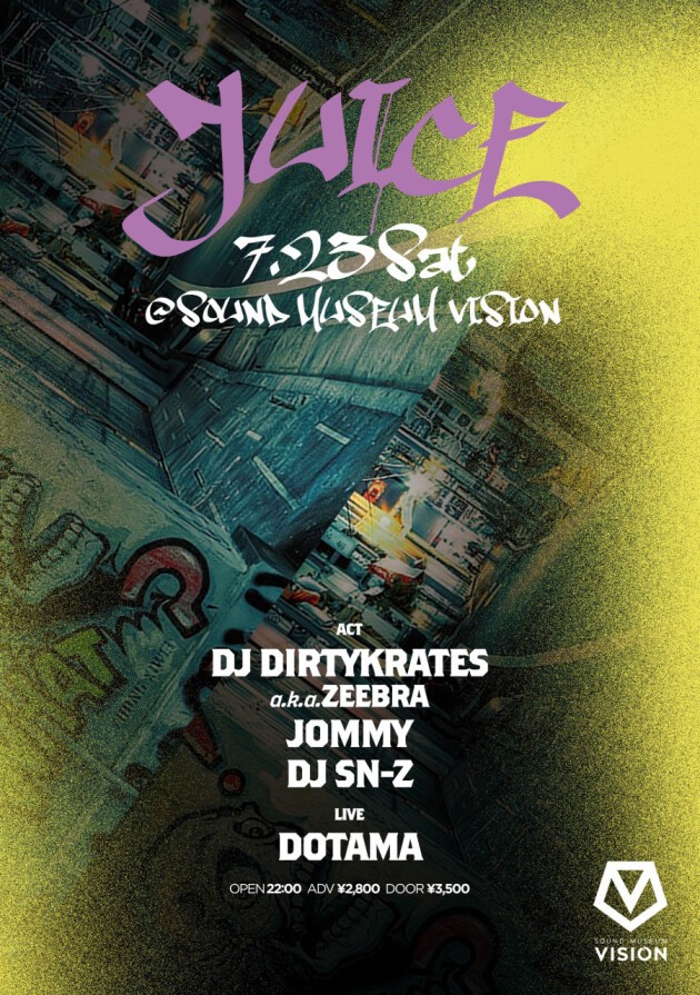 厳選されたDJに加え、LIVEに特化した本物のHIPHOPを体現出来る硬派なPARTY “juice”。
