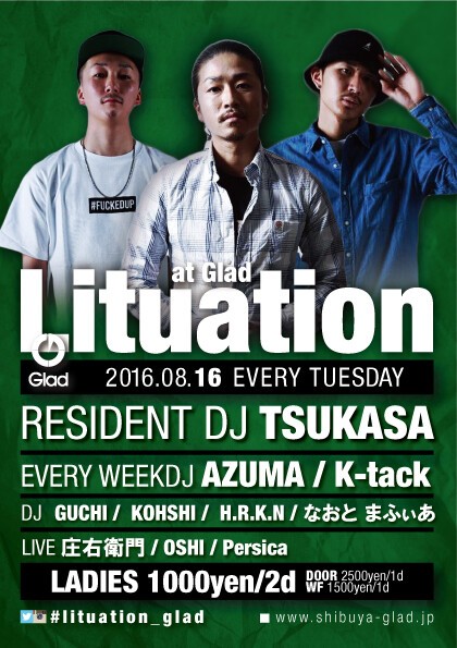 毎週火曜日は是非Lituation、渋谷、Gladお越しください!