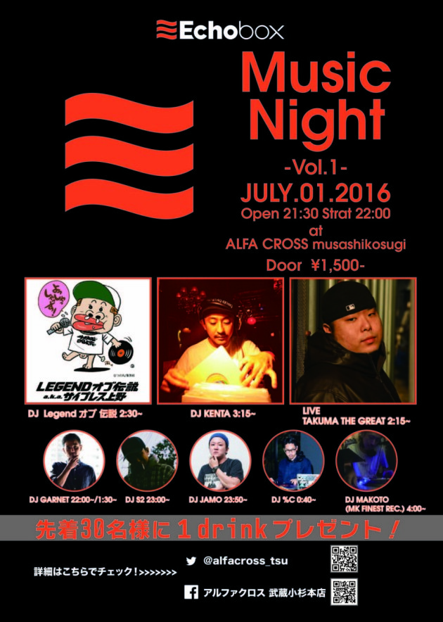 オーディオメーカーEchobox社が、武蔵小杉アルファクロスで年4回開催する音楽イベントで、今注目の武蔵小杉では類を見ない新しいパーティー。