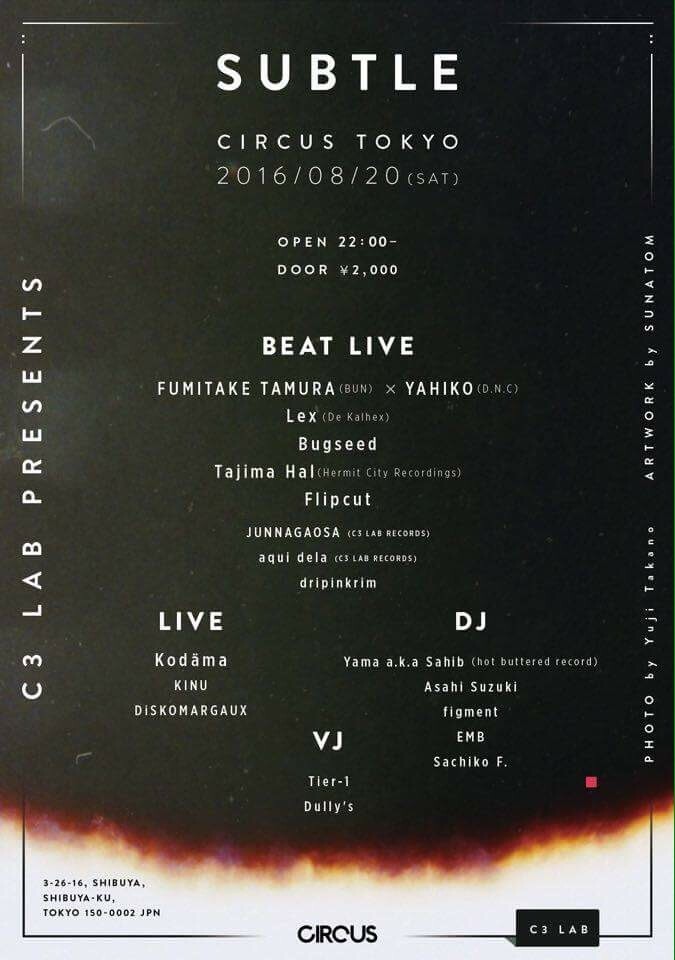 今回のゲストは、Nujabesの意思を引き継いだフランスのプロデューサー"Lex (De Kalhex)"、Trip Hopとネオソウルを昇華させ、フジロック2016に初出演したフランスの"Kodäma"、世界を相手に真剣勝負を挑む"Bugseed", "Tajima Hal"、そして日本で最先端を独走するBeatmaker "Fumitake Tamura (BUN)"