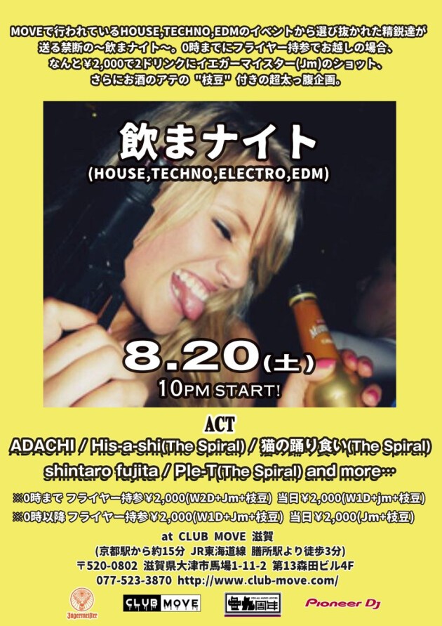 MOVEで行われているHOUSE,TECHNO,EDMのイベントから選び抜かれた精鋭達が送る禁断の~飲まナイト~。