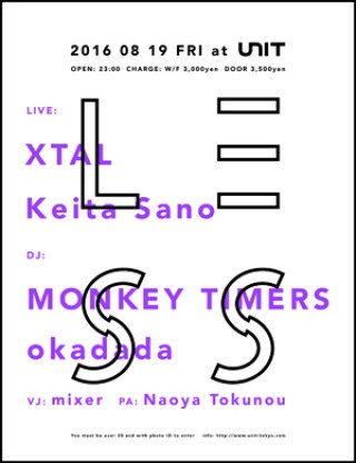 MONKEY TIMERS、okadadaがレジデントDJを、ロゴ、フライヤーなどのビジュアルをYOSHIROTTENが務める、ニューパーティー『 LESS 』が始動。