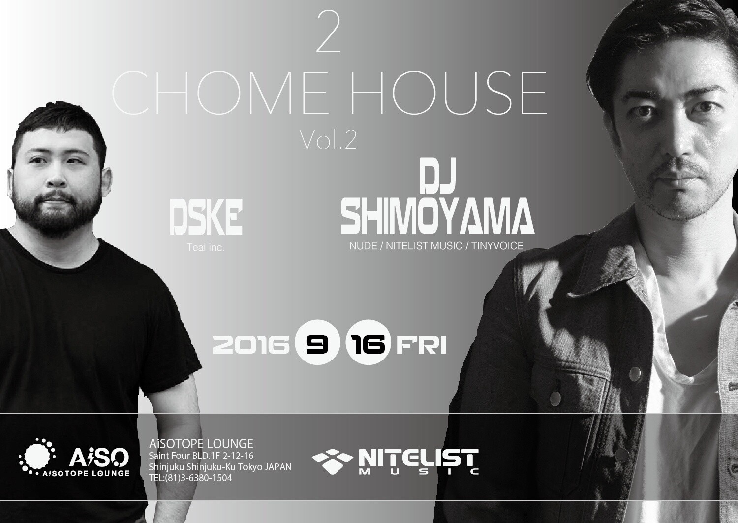 メインアクトは日本のハウスシーンの黎明期から活動し、今も第一線でシーンを牽引するDJ SHIMOYAMAをブッキング。ゲストDJは東京とベルリンを拠点に活動するハウスDJ DSKE、Maniac Loveogueingのアフターアワーズからキャリアをスタートし、ベルリンではTresor、Panoramabar等世界TOPレベルのクラブでのプレイ経験を持ち、テクノに対しても造詣が深いDJだ。また、Vogueingではシーンを代表するハウスのハイレベルなパフォーマンスが披露される。
