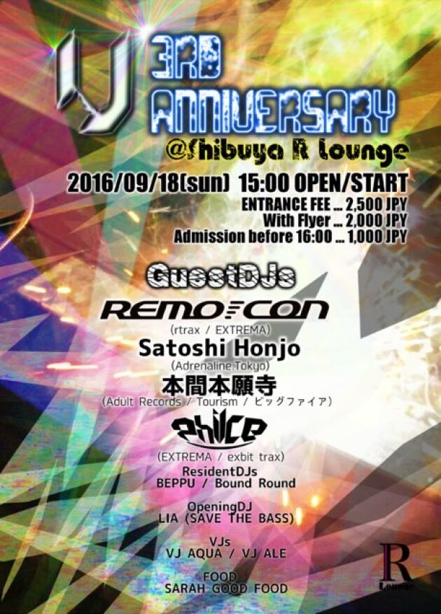 渋谷R loungeのハード系アフタヌーンパーティーUがついに3周年!!