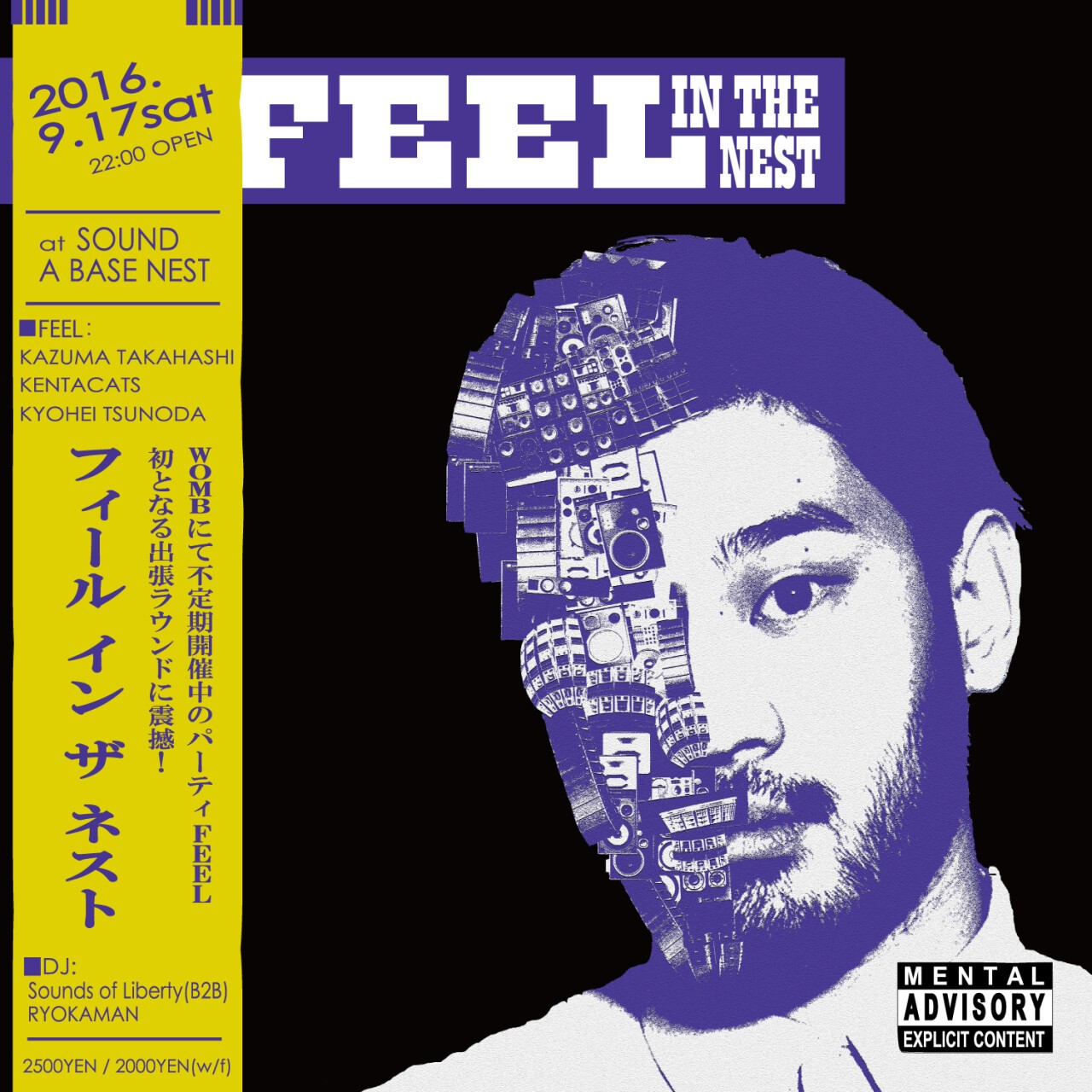 WOMBにて不定期開催中のパーティー"FEEL" 初となる出張ラウンド! 同パーティー主宰であるKAZUMA TAKAHASHI & KENTACATSと、SOUND A BASE NESTを拠点にFEEL DJとして彼らと共に活動してきたKYOHEI TSUNODAの画策により、本企画が実現。また、迎え撃つローカルDJは、FEELとも親交の深い Sounds Of Liberty(B2B)など、FEEL at WOMBのヴァイブスを限りなく再現するためのクレジット。