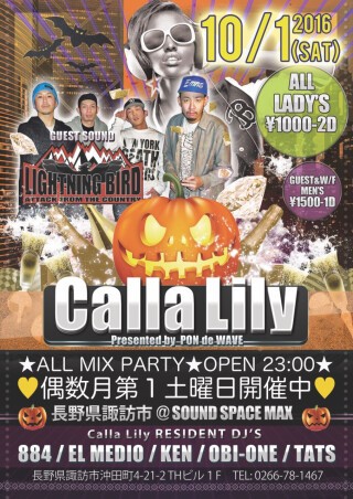 『10/1(土)は諏訪 sound space MAX ”Calla Lily”に集合』