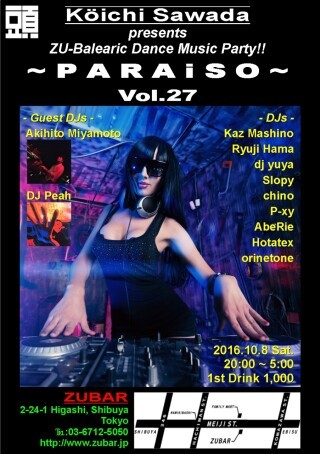 明治通りから渋谷川に架かる、名も無き橋のたもと ― 渋谷と恵比寿の中間に佇む都内屈指の人気スポット、DJ BAR「頭バー」ならではのバレアリックスタイル"ZU-Balearic"を展開中のDJ & Live Party, PARAiSO。