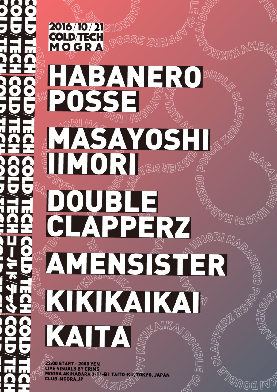COLD TECH proudly presents COLD TECH TOKYO edition, showcasing a hand selected lineup of the best of Tokyo's bass artists and DJ's throwing down a solid night of sets ranging throughout the bass and dance music spectrum.