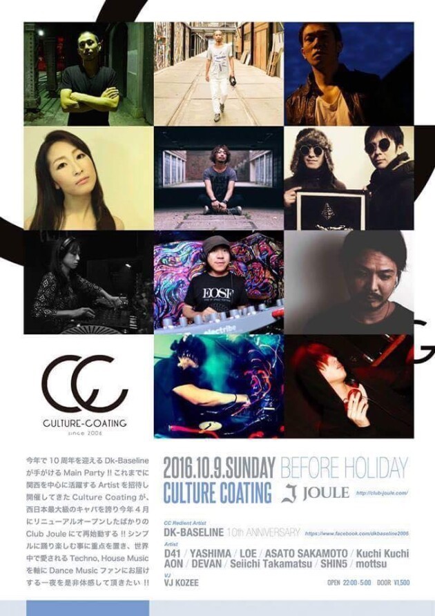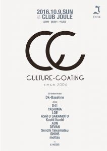 これまでに関西を中心に活躍するArtistを招待し開催してきたCulture Coatingが、西日本最大級のキャパを誇り今年4月にリニューアルオープンしたばかりのClub Jouleにて再始動する !!