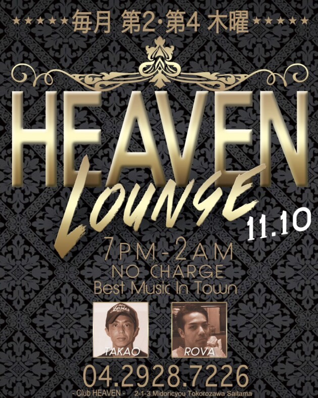 毎月第2第4木曜日に開催しているラウンジスタイルのHEAVEN LOUNGEです!普段のクラブとは違いゆっくりと楽しめます!