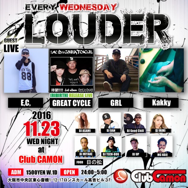 【毎週水曜LOUDER】11/23(水)☆HIP HOP、BASS MUSICを中心に幅広く選曲するEVERY WEDNESDAY PARTY『LOUDER』★★GUESTにE,C,、GREAT CYCLE、Kakky、GRLが登場☆☆FOODブースは日の松が出店★★