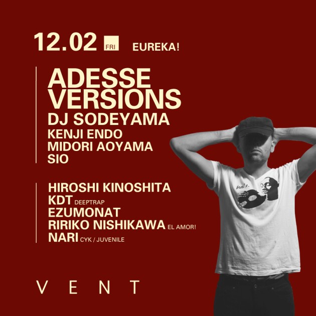 VENT で初開催となる今回、ゲストには過去にテクノ界隈で名を馳せ、Berghain のレーベル Ostgut Ton やCocoon からもリリースするなど異色の経歴を持ち、現在は Local Talk、Numbers、Toy Tonics そして Detorit Swindle 主催の Heist Recordings から新作をリリースする Adesse Versions が登場。更に国内からは、The People in Fog 名義でリリースした“ Higher ”が大きな注目を集める DJ SODEYAMA が参加。