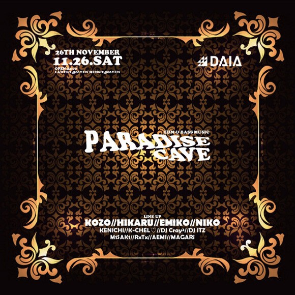 渋谷に生まれたニュースポット「DAIA」でスタートするEDM Party「PARADISE CAVE」。地下に広がる楽園をモチーフに最高のエンターテイメントをお送りします。