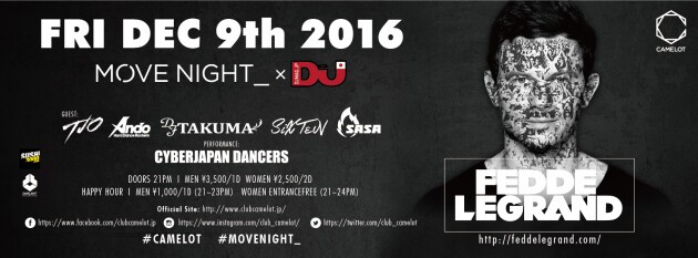 12/9(金)にCAMELOTで開催されるスペシャルイベント「MOVE NIGHT_×DJ MAG JAPAN」にFEDDE LE GRAND(フェデ・ル・グランド)の出演が電撃決定!