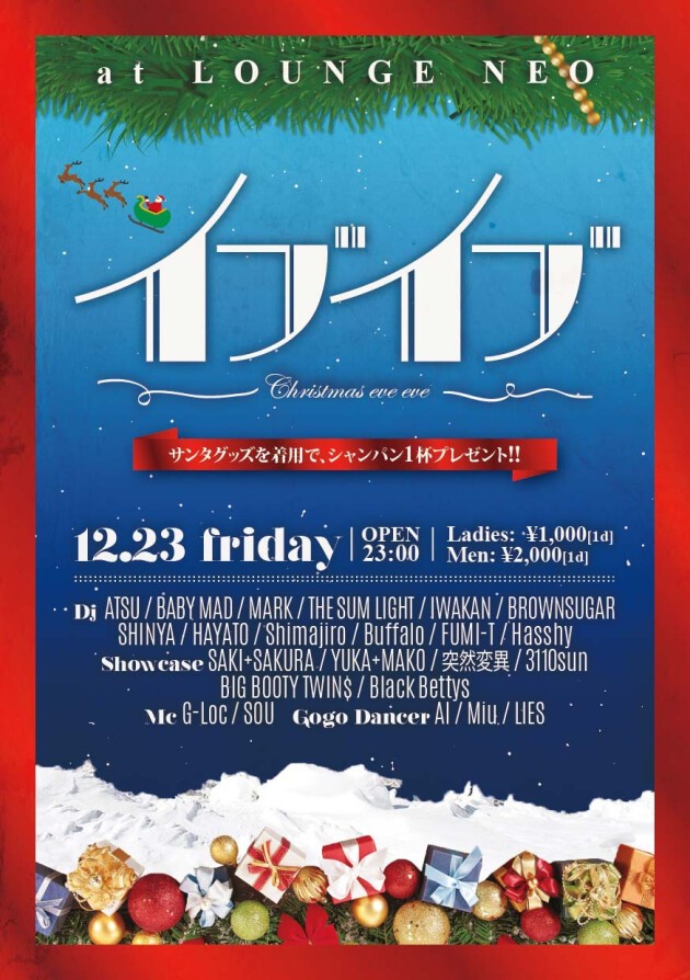 ☆サンタグッズ着用のお客様には、シャンパン1杯プレゼント!!