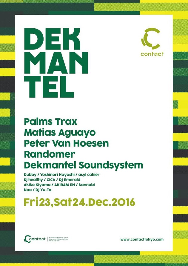 そんなDekmantelによるパーティが国内初開催となった4月に引き続きContactで開催! コレクティヴのコアメンバーThomas MartojoとCasper TielrooijによるDekmantel Soundsystemが二夜に渡ってパーティをナビゲートする。 2日目はDekmantelのテクノ・エクスペリメンタルサイドをフィーチャー。これまでの来日公演でフロアを陶酔へと導いてきたPeter Van Hoesenや、インダストリアルとダブステップの影響を感じさせるざらついたテクノで人気を集めるRandomerの他、国内からは、Kebko Musicを始動してエレクトロニックミュージックの新たな地平を開拓中のAkiko Kiyama、そして、アンダーグラウンドの猛者たちが集う幡ヶ谷のディープスポットforestlimitからAKIRAM ENが出演。実験性に溢れる刺激的な一夜をお届けする!