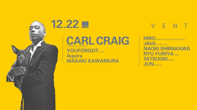 時代を経ても変わらぬ輝きを放ち続ける数々の傑作を発表し、現在も尚進化し続ける天才アーティストCarl Craig、別次元の良質なサウンドを提案する、期待のニュースポットVENTでのプレイが決定!
