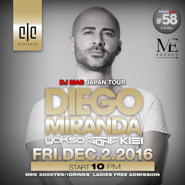 イギリスの権威ある音楽誌「DJ Mag」の日本版「DJ MAG JAPAN」によるDJツアーをELE TOKYOにて開催。ポルトガルで最も影響力があるDJ・プロデューサーとして世界中のクラブやビッグフェスから出演オファーが殺到する Diego Mirandaが来日登場します。2011年にはDJ Mag TOP 100 Clubsで堂々8位にランクインしているイビサ島のUshuaia IbizaのメインDJとして観客を大熱狂させ、Sensation、Ultra Music Festivalをはじめとする大規模イベントやパーティーなど世界中で活躍する彼のプレイと世界観をお楽しみいただけます。