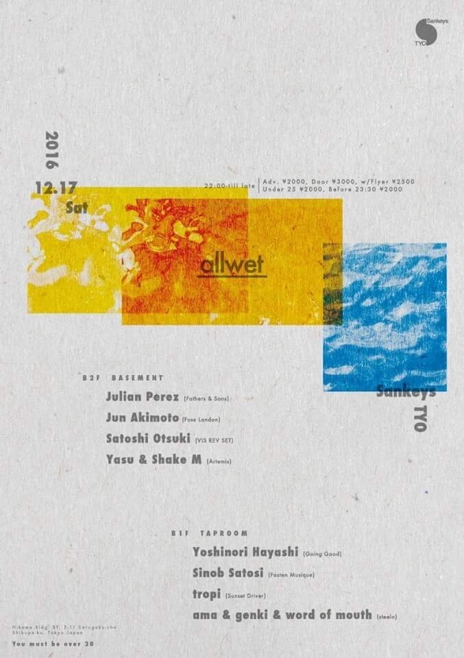 2016年9月にIbiza Undergroundで行われたFathers & Sons Productionsナイトに出演したSatoshi Otsukiとここ東京でも共演を果たし、京都在住でロンドンのFuse LondonレジデントであるJun Akimotoもラインナップ。過去にヨーロッパで共演した経験もありお互いを知り尽くしたアーティストたちが12月17日にSankeys TYOへ集結する。