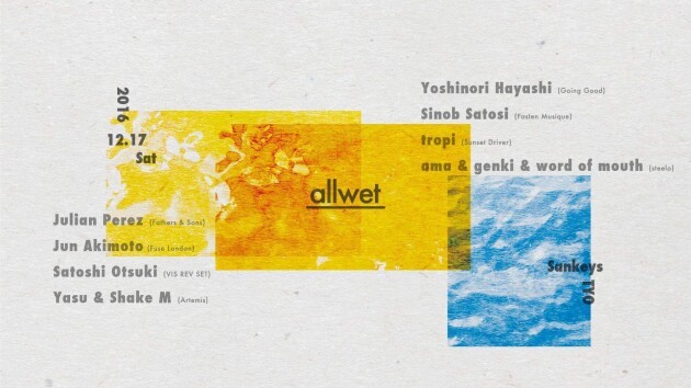 現在最も勢いのあるパーティーの一つであるArteminsレジデントからYasuとShame MがオープニングDJとしてパーティーを形作り、2ndフロアーでは、カルト的な人気を誇るイギリスのレーベルGooing Goodから自身のEPをリリースしたYoshinori Hayashiをはじめ、2016年にTechniqueがレコードストアーディー限定EPをリリースした際に楽曲が収録されたSatosi Sinob、唯一の女性DJのtropi、allwetレギュラーDJを務めるama&genkiと今回はword of mouthがb2bでフロアーを盛り上げる。