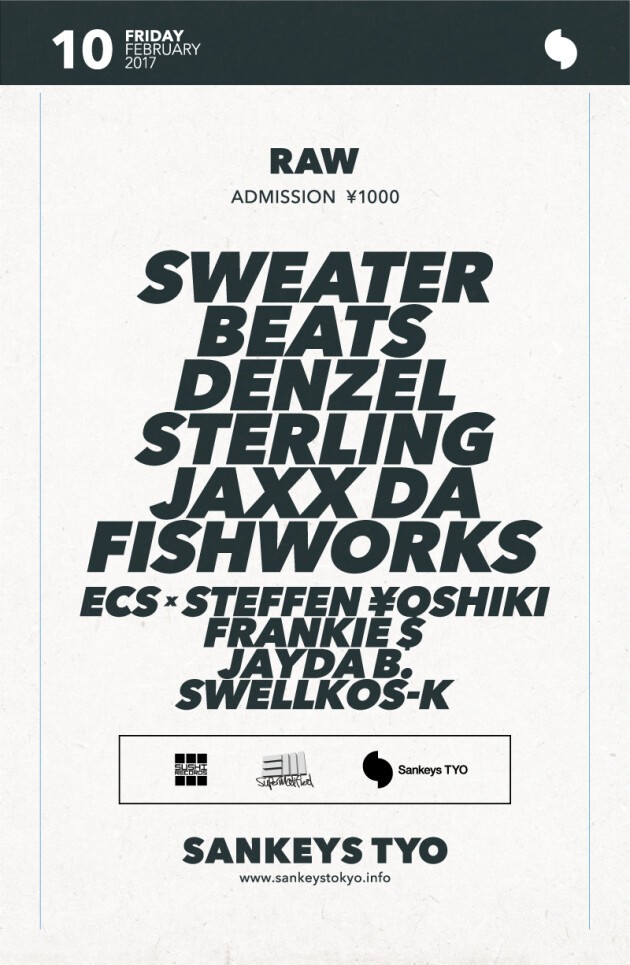 2017年のRAWをキックオフするにはこの上ないゲストに間違いない。さぁ、自己の感性と共に上り詰める男 Sweater Beatsの歩みを東京で体感しよう!