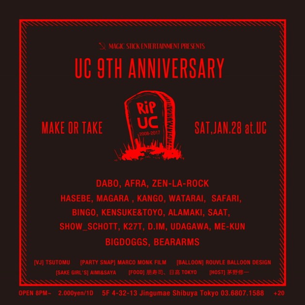 『ヤンチャナイト』 DJ’s, MOTOHIRO, ZIN, KAZ, A2O, SHINGO, CHI-BOU, Pちゃん, 武道, MOTOKI, MC’s, i@ra, Kt,