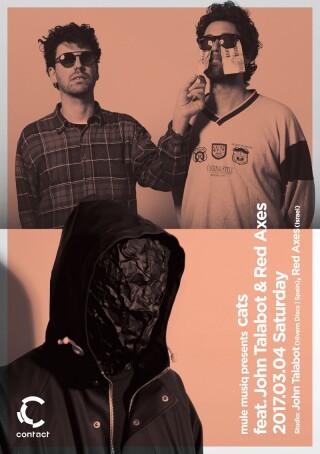 日本を代表するダンスミュージックレーベルmule musiqによるパーティーcatsがContactで初開催される。この記念すべき一夜を彩るゲストには、ハウスからインディーダンス、ニューディスコまでを網羅するサウンドでヨーロッパのシーンを牽引するJohn Talabotと、 そのTalabotが主宰するレーベルHivern Discsに快作を残しているイスラエルのテルアビブ拠点のユニットRed Axesが登場する。躍進作となった1stアルバム「ƒIN」から早5年となるJohn Talabotは、昨年唯一のリリースだったシングル「Voices」がGerd Janson監修の「Fabric 89」に収録され、そしてこの3月には、ここ数年は頻繁にツアーを共にしているAxel BomanとのプロジェクトTalabomanでのアルバムリリースを控えているなど、話題を欠かさない活躍ぶり。一方のDori SadovnikとNiv ArziによるRed Axesも、2015年と2016年の2年間で約15作のEPとシングルを発表し、ラテンやクンビアなどを取り入れた独自のオルタナティヴ・ディスコ/ハウスで欧米のシーンを席巻している。年間を通してフルにブッキングされている多忙な2組の共演は見逃し厳禁だ。