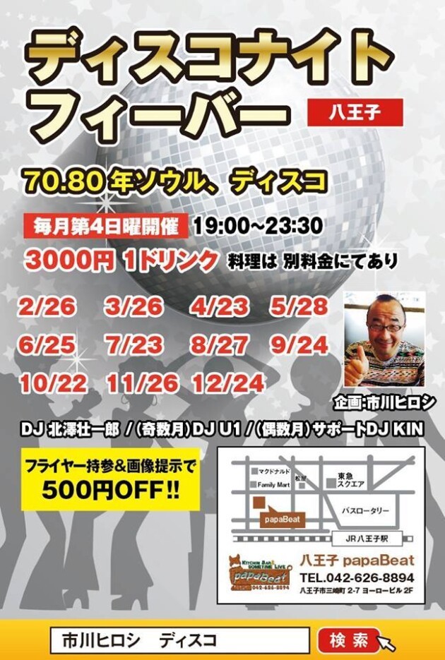 DISCO選曲が中心でステップやパラパラ・ユールビートはかかりません。