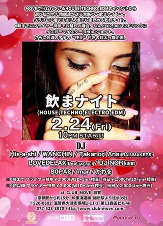 MOVEで行われているHOUSE,TECHNO,EDMのイベントから選び抜かれた精鋭達が送る禁断の~飲まナイト~。
