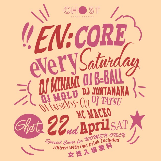 2017年現在も常時600人を超える集客で賑わう毎週土曜日、Ghost ultra loungeの看板イベント「EN:CORE」(エンコア)!
