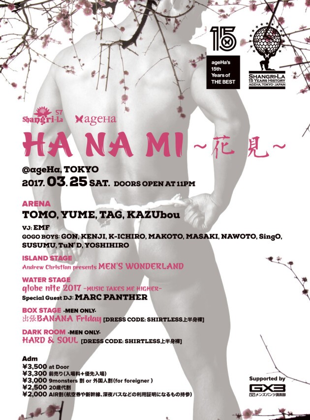 そんな欲張りな楽しさを味わえるのは、Shangri-Laだけ!そう、ここは男だけのお楽しみが溢れそうな、大人の夜のMEN’S WONDER LAND。 “HA NA MI 2017”へようこそ!