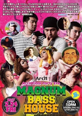 どこか懐かしくあったかい、そんなHOUSEに出会える『MAGNUM BASS HOUSE』。今までリアルで新しいHOUSEを鳴らし続け、数々のフロアーを笑顔にし、垣根を越えた多くの人達を一つにしてきた本パーティー。2/25にCloseするArcHで、クローズ前夜の2/24にラスト開催します。今まで楽しんでくれて支えたくれたみんなと当日会える事を楽しみにしています。