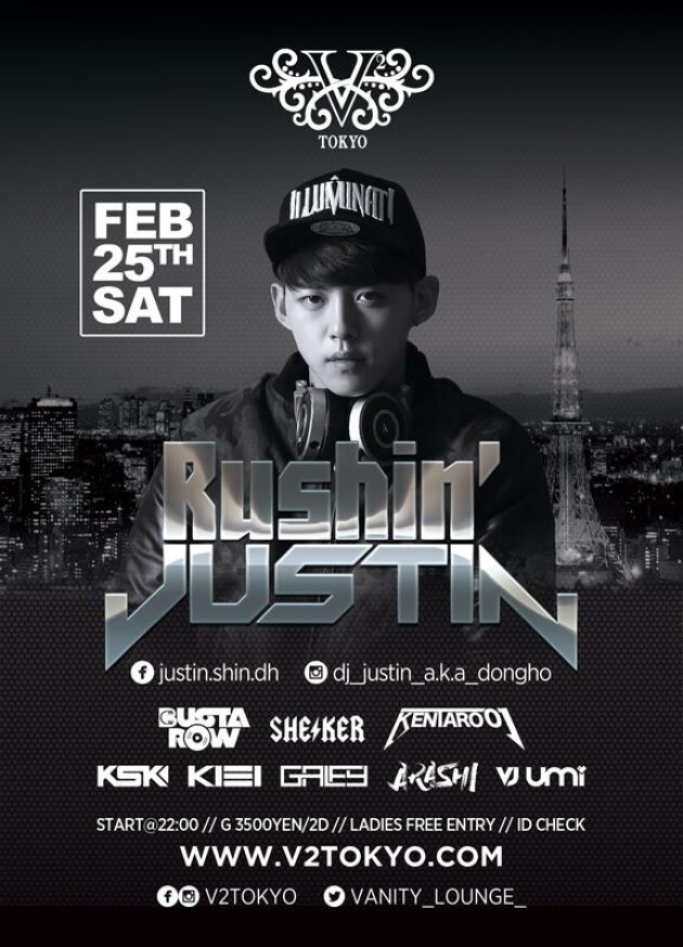 明日2/25(土)V2 TOKYOに世界クラブランキング2016年5位に選定された韓国最大規模を誇るクラブ''OCTAGON'' RESIDENTDJ 『Rushin'JUSTIN』が登場します!
