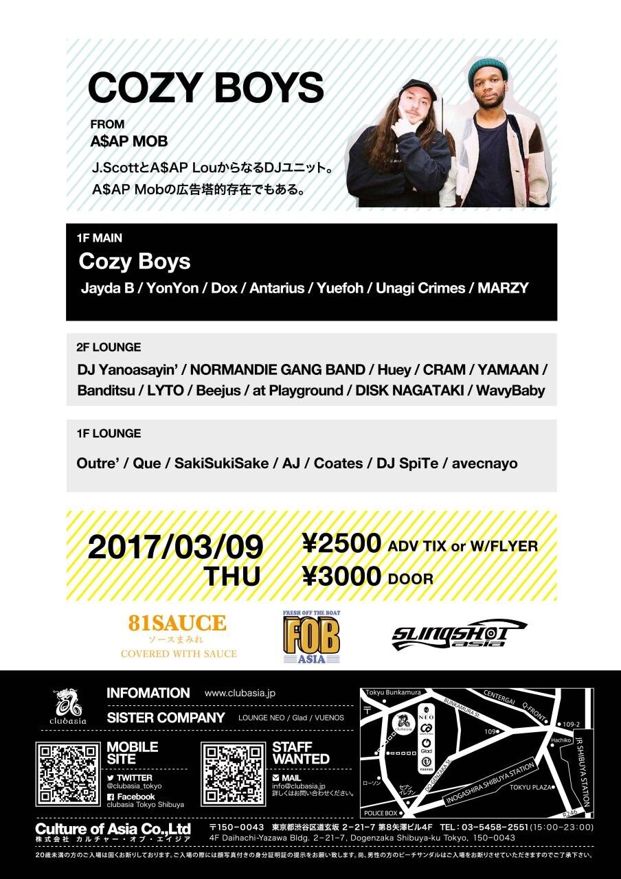 A$AP Mob’s DJ Collective, Cozy Boys, live in Tokyo alongside a sauced up platter of some of Tokyo’s finest. Three rooms serving trap, hip-hop, R&B, funk, soul, 90s, and nothing but heat all night long. Too much sauce, all presented by the newest head chef in the kitchen, 81 SAUCE. #81SAUCE