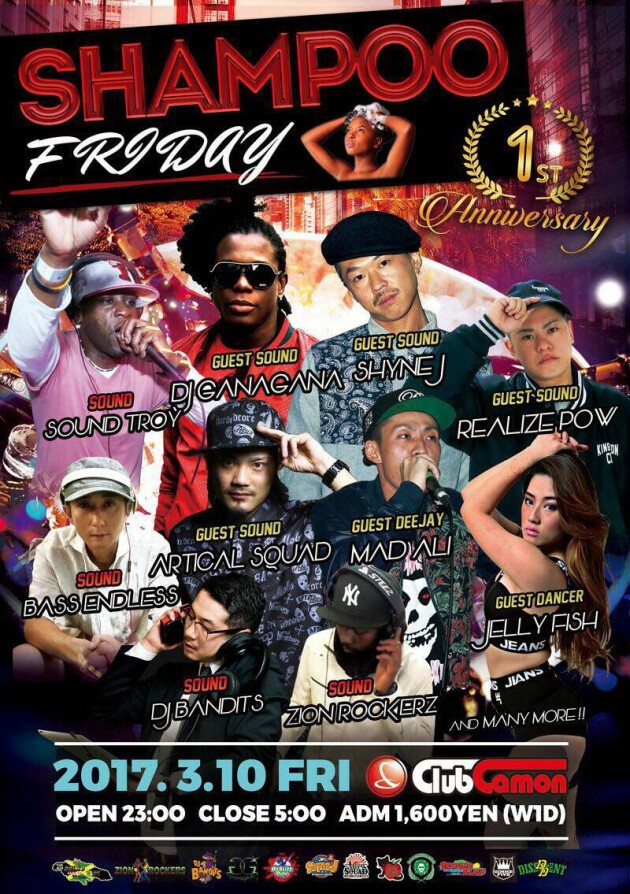 【SHAMPOO FRIDAY -1st ANNIVERSARY-】3/10(金)☆DANCEHALL REGGAE NIGHT『SHAMPOO FRIDAY』1st ANNIVERSARY☆☆JAMAICAN FOODブース出店★★