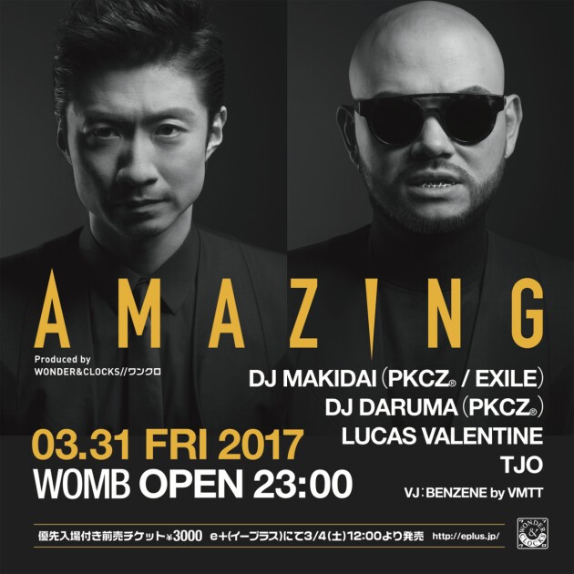 Finally, DJ MAKIDAI and DJ DARUMA are coming back to WOMB! While celebrating their return to DJing, let's show them an amazing time! Because of an accident late last year, they put on hold the solo activities and also as PKCZ®. After making their long-awaited return to action, DJ MAKIDAI(EXILE / PKCZ®)and DJ DARUMA(PKCZ®)will finally make their return to WOMB. The event will be held to replace the event that had been planned for January of this year, and the two of them will be celebrating their return with friends such as LUCAS VALENTINE and TJO, and will be presenting the crowd with "amazing sounds". As we near the return of PKCZ® with VERBAL, DJ MAKIDAI and DJ DARUME will appear first to reveal an energetic performance.