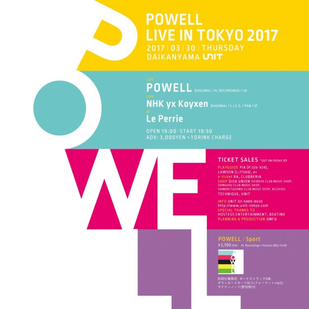 昨年10月に<XL Recordings>からリリースされるや、米<Pitchfork>で8.1の高レビューをマークし、英<ラフ・トレード>、英<FACT Magazine>、<エレキング>、<サインマガジン>といった音楽系メディアで2016年間ベストアルバムに選出された(<エレキング>では年間ベスト1位を獲得)傑作ファーストアルバム「SPORT」をひっさげて、UKアヴァンダンス界の異端児パウエル待望の、そして一夜限りの来日公演が決定!