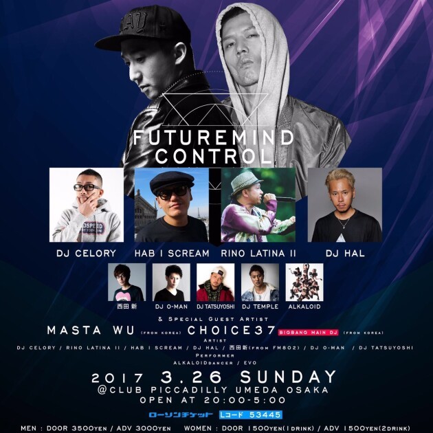 HIPHOP musicをベースに最新のmusicはもちろん、80年代、90年代のmusicもチョイスする、今までありそうでなかったイベント[FUTUREMINDCONTROL]!