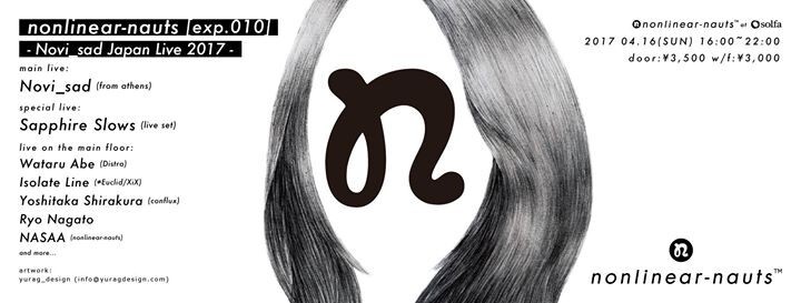 電子音楽音響クラブサウンドを軸に実験的な取り組みや尖端的なスタイルを追求するアーティストのプラットフォームとなる『nonlinear-nautsノンリニアノーツ』が、宇宙や自然界の事象を数理的に解析し再構築することで細密かつ美麗な音響表現に結びつけるなど美術界や映像・映画界からも注目を浴びているギリシャの首都アテネを拠点とするサウンドアーティスト《Novi_sad》をゲストに迎え、中目黒solfaにて開催。