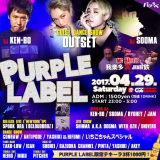 【PURPLE LABEL】4/29(土)☆GOOD MUSIC ONLY NIGHT『PURPLE LABEL』☆☆パプラベならではのハイクオリティーなアーティスト多数出演★★