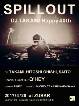 タカミ、ヒトシオオイシ、サイトウの3人が始めたパーティー「スピルアウト」も、2001年のスタートから16年が経ちました。いつ一旦休止したか忘れましたが(笑)、「久々やろっか⁉︎」ってなって再始動したのが、私サイトウが40歳になった5年前。その後順番にヒトシオオイシ、そして今回タカミも40歳になります。
