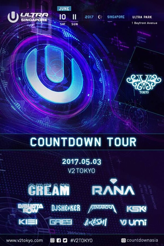 ◆◆6/10(土)11(日)開催の ”ULTRA SINGAPORE''に先立って、GW5/3(水)V2 TOKYOにて『ULTRA SINGAPORE COUNT DOWN PARTY』を開催!◆◆