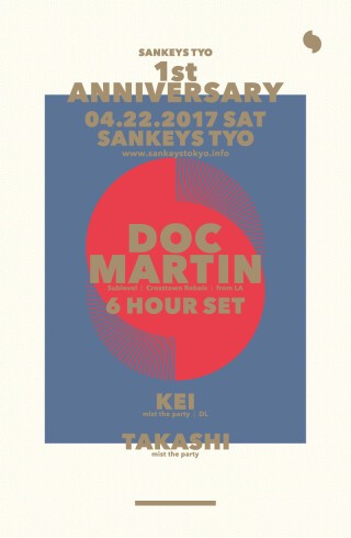 渋谷、SANKEYS TOKYOが一周年を迎え、アニバーサリーパーティを開催!米西海岸のリアルレジェンド、DOC MARTINのロングセットが決定!