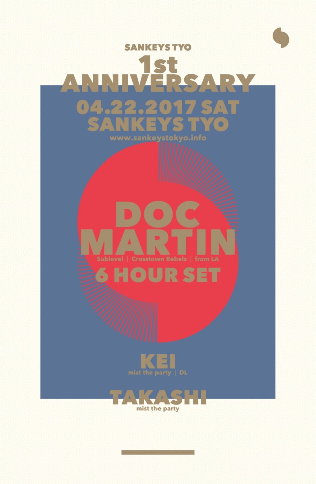 Tokyo music scene, which has been experiencing its period of ripe, will be celebrating Sankeys TYO’s first anniversary. Sankeys TYO opened in April 2017 to make the world know about the present and the future of Tokyo culture, hoping that they could once more heat up the music scene in Tokyo. This monumental day will be cerebrated with a variety of people-who are all highly sophisticated boys and girls from the city, and this day will be the day that each and single of those people will find a new ‘Tokyo’ through Sankeys TYO’s upcoming event. We will welcome Doc Martin, who is well known for ‘the real legend of the west coast’ to lead our special big night. Doc Martin’s highly evaluated technique has always been, and will always drive the audience crazy and bring them high up to heaven, and you will never feel wasted after spending this unforgettable 6 hours with Doc Martin and his music.