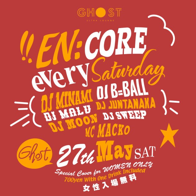 2017年現在も常時600人を超える集客で賑わう毎週土曜日、Ghost ultra loungeの看板イベント「EN:CORE」(エンコア)!