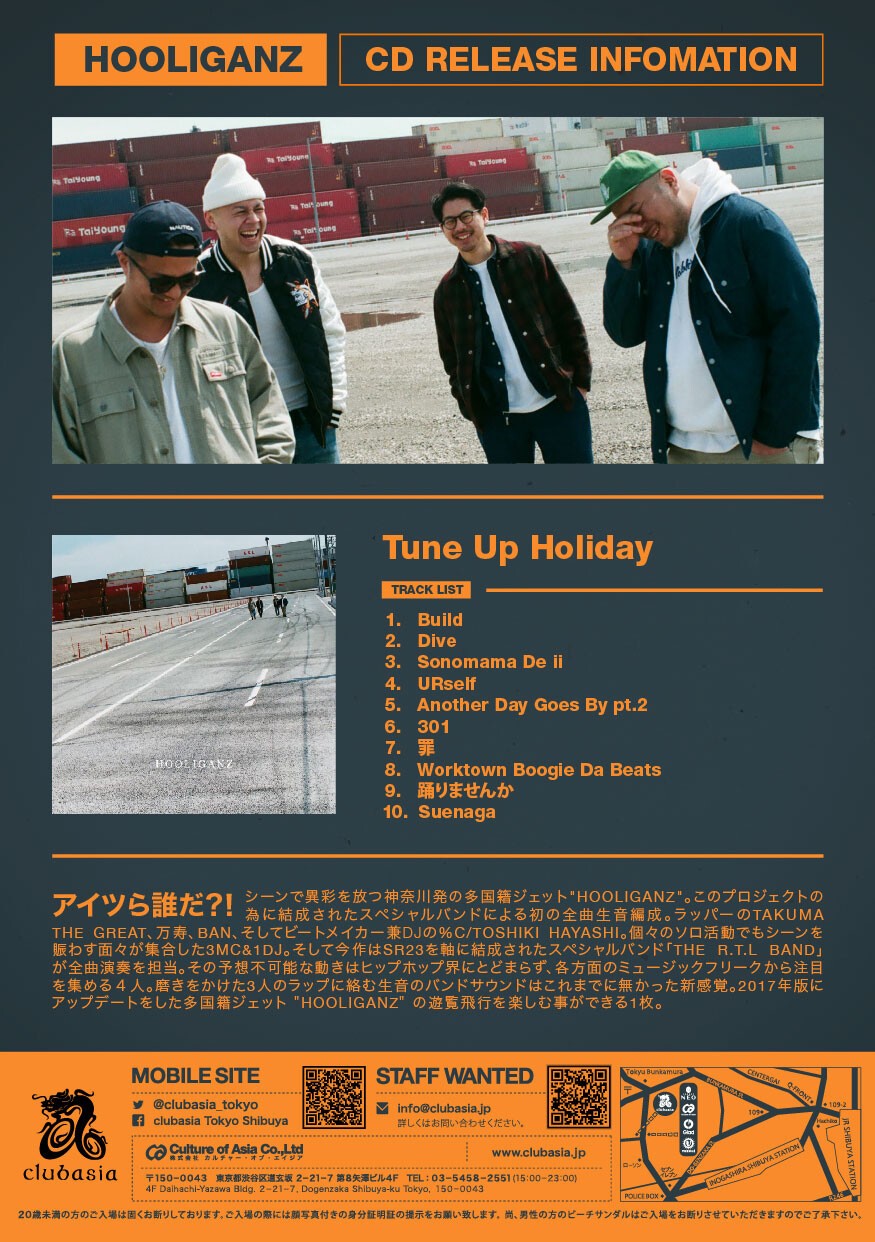 DJ HOKUTOに続きHOOLIGANZの出演も決定!! NEWアルバムリリース後のLIVEをお見逃しなく!! みなさん!! 6月最終日はclubasia集合でお願いします!!