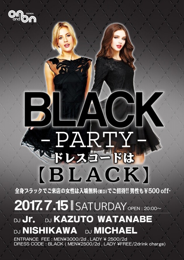全身ブラックカラーの女性入場無料(要D)!男性500-offです!