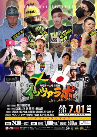 【イッツァラボ 〜It's all about〜】7/1(土)☆毎月第1土曜開催『イッツァラボ 〜It's all about〜』★★GUEST SOUNDにGHETTO BLASTER、GUEST LIVEにKASHU、雑念狂奏、EMANONが登場☆☆RUB A DUB OPEN MIC★★