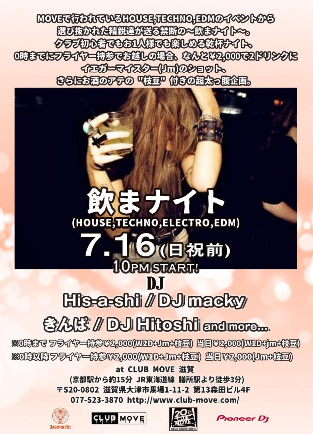 MOVEで行われているHOUSE,TECHNO,EDMのイベントから選び抜かれた精鋭達が送る禁断の~飲まナイト~。